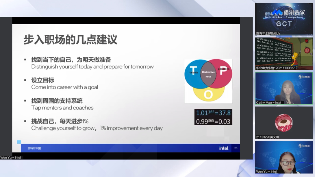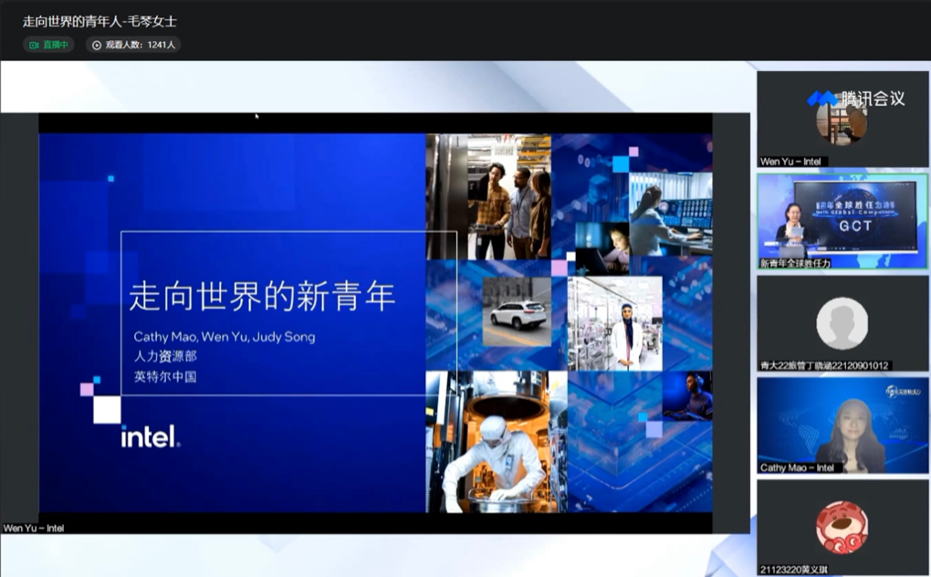 2023年4月27日,英特尔(中国)人力资源总经理毛琴女士开展“走向世界的新青年——新青年全球胜任力人才培养”主题讲座。第六期青共校、第二期党校全体学员积极参加并认真聆听了此次线上讲座。