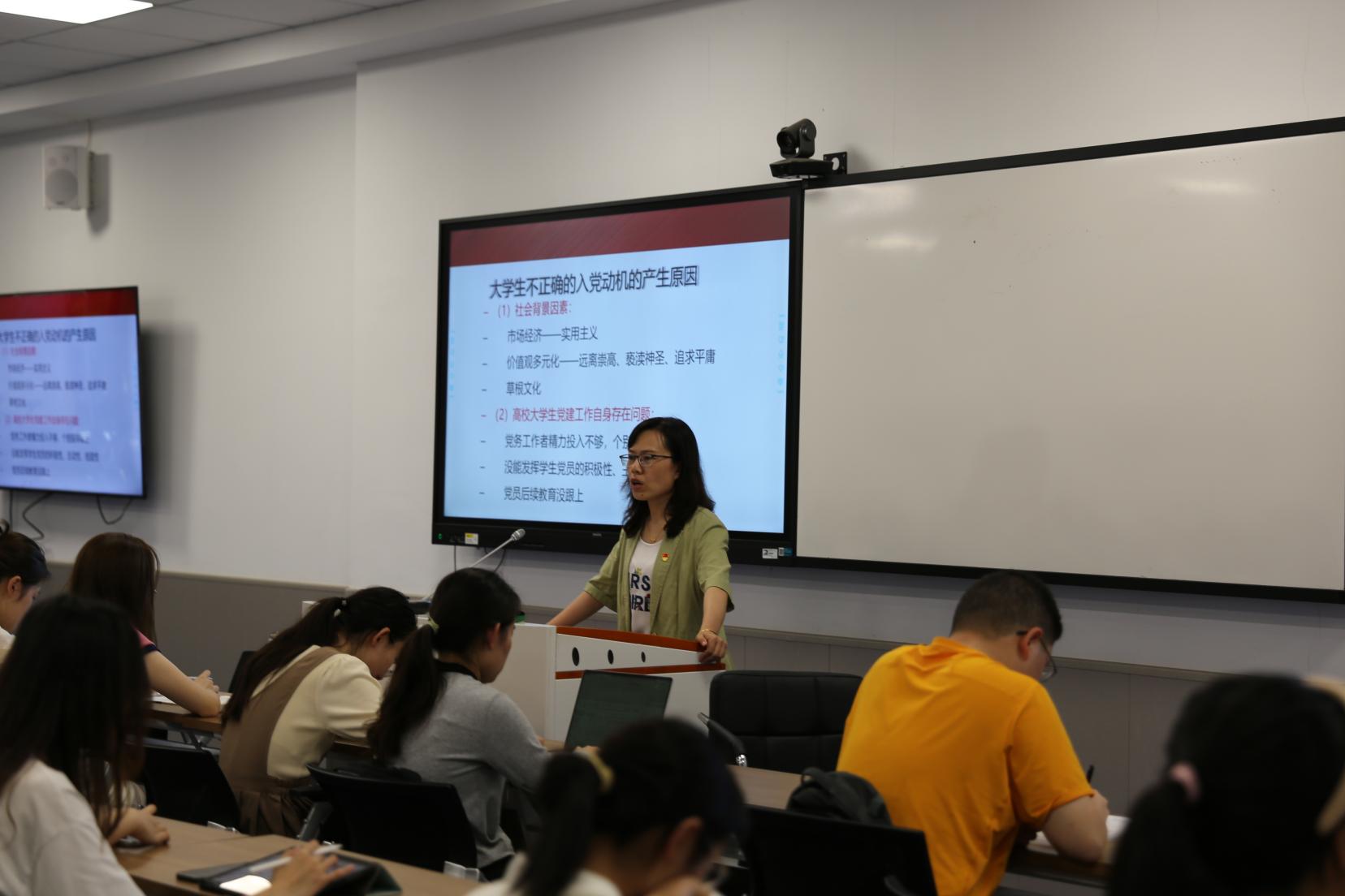 最后,王辉老师着重讲解了老员工该如何端正入党动机,以实际行动争取入党,并介绍了发展党员工作的基本程序和入党申请书的基本内容。她向同学们着重强调了“档案”的重要性,阐明档案记录将伴随我们一生,至关重要。