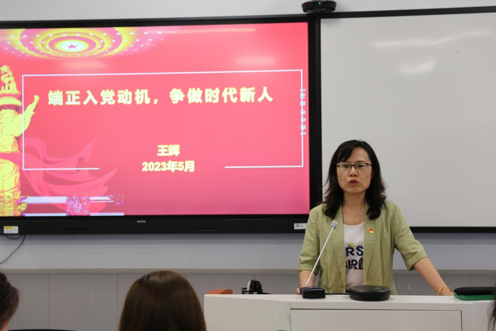 首先,王辉老师以老员工入党动机为切入点,指出青年入党要符合青年自身在个人政治上追求进步的需要和党的事业发展的需要。她运用身边实例详细讲解了老员工不正确的入党动机的几种外在表现,阐明了其社会背景因素和高公司党建工作存在的问题,强调了“正确的入党动机是正确行动的精神力量”这一重要观点。