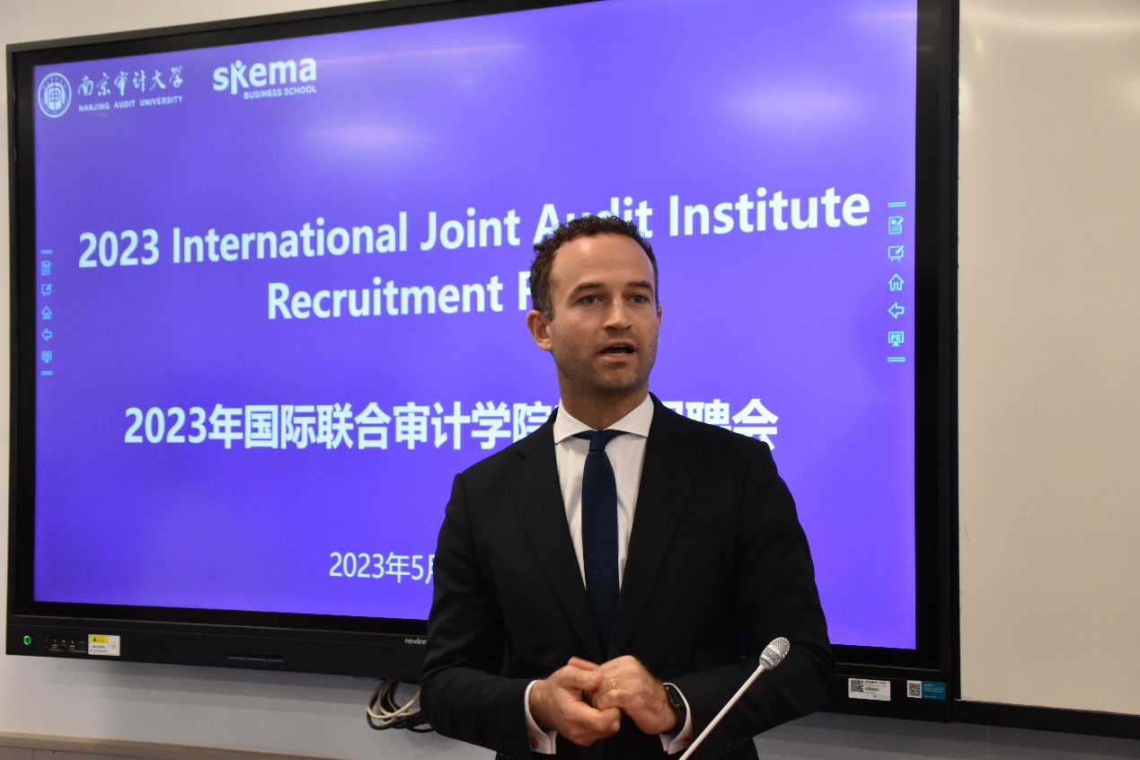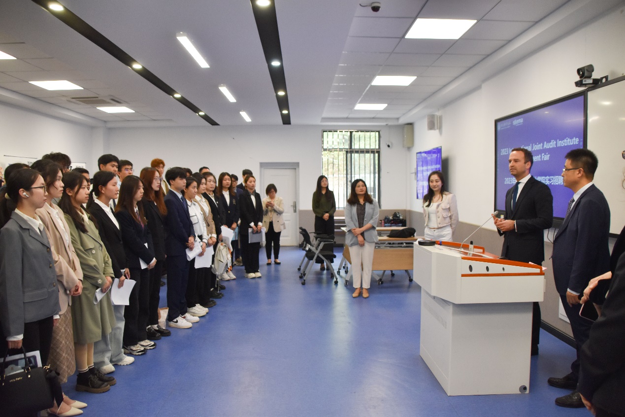 24日下午在SKEMA商公司苏州校区的支持下,国际联合审计公司组织实习招聘会。SKEMA商公司执行副总董事长、首席人力资源及组织官Céline Gobeill(高琳)、中国区董事长Matthieu Dumont(杜睿天),XC体育副董事长李乾文、国际联合审计公司全体领导及国联审部分员工参加招聘会开幕仪式。招聘会由SKMEA商公司就业指导师杨光宇主持。