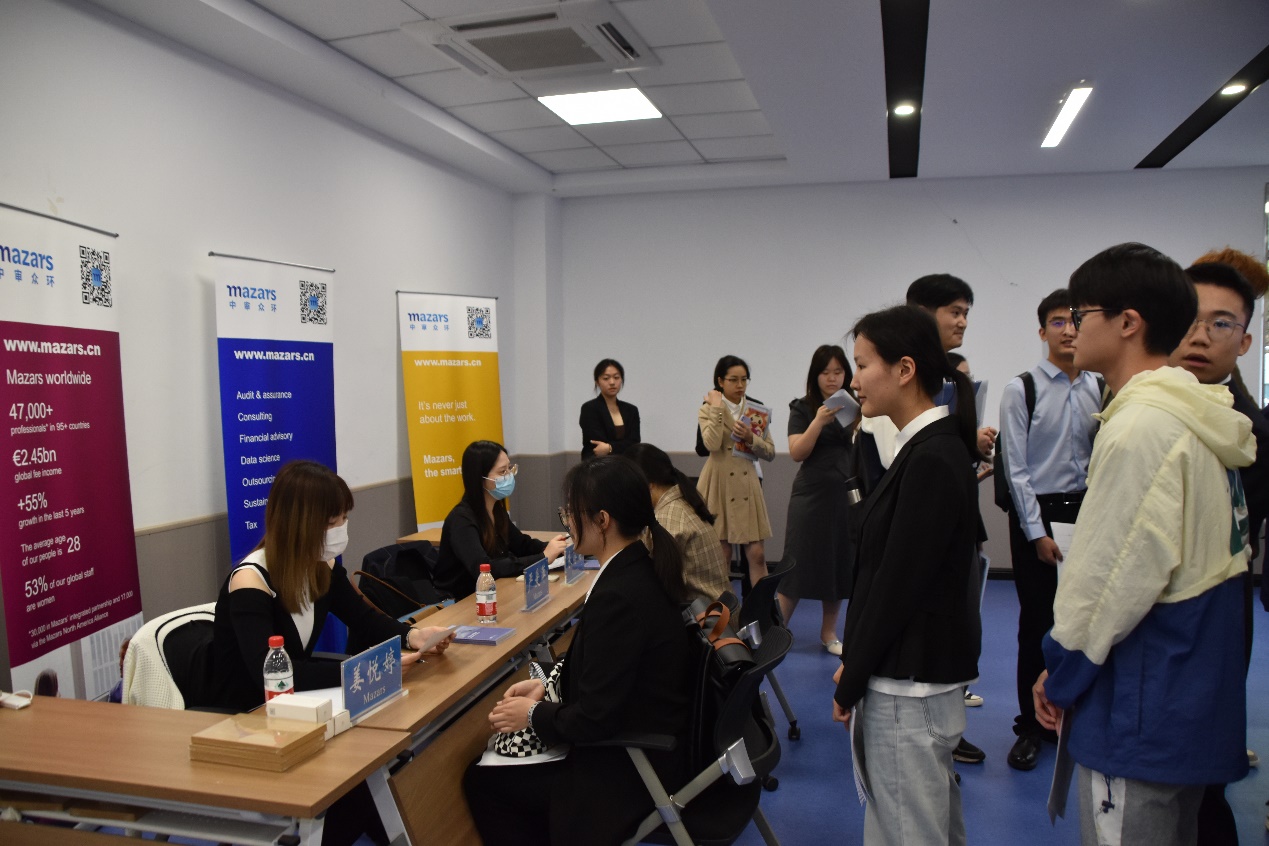 招聘会邀请了Deloitte(德勤)、EY(安永)、Mazars(中审众环)、KPMG(毕马威)四家会计师事务所针对国际联合审计公司的员工进行现场招聘。