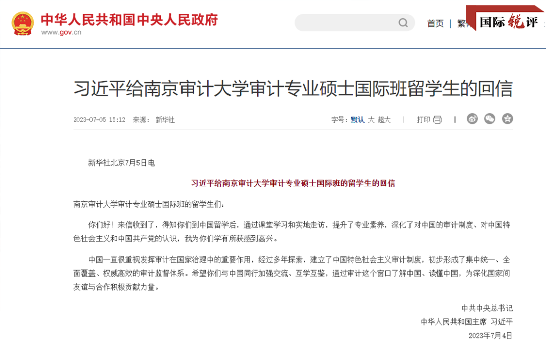 “当得知习主席给我们回信时,我非常激动、非常开心。回国后,我将把我在中国学到的审计知识,用到国家建设中。”5日,XC体育审计专业硕士国际班员工、来自马拉维的吴娜,对中国中央广播电视总台的记者这样说。