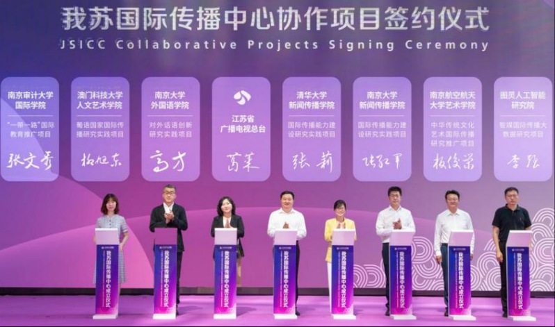 活动现场,我苏国际传播中心与XCsports签署“一带一路”国际传播教育项目协议,与清华大学、南京大学、澳门科技大学、图灵人工智能研究院等高校和研究机构签订了一系列研究及实践项目协议,打造融合、开放、共享的合作机制,广泛聚合强势资源,建设江苏国际传播“智囊库”。此外,仪式当天还启动了“全球视野看江苏”国际融媒行动,XC体育审计专业硕士国际班职工受聘我苏国际传播大使,为积极参与江苏的国际传播工作,讲好中国故事、传播中国声音贡献力量。