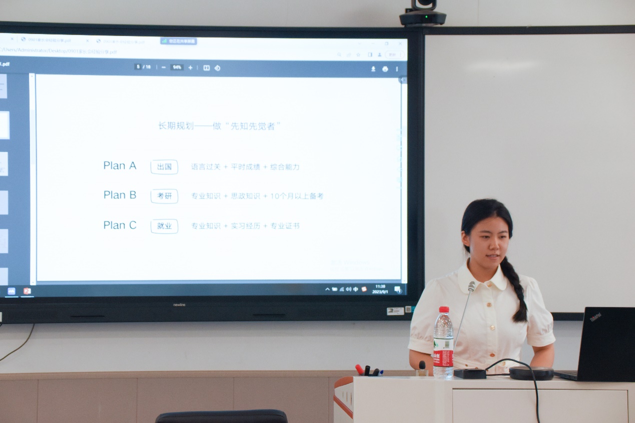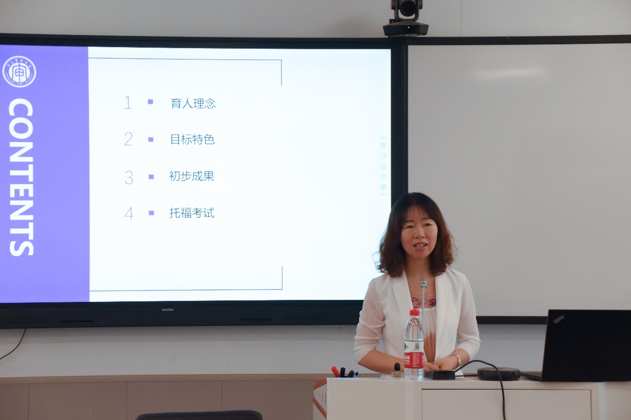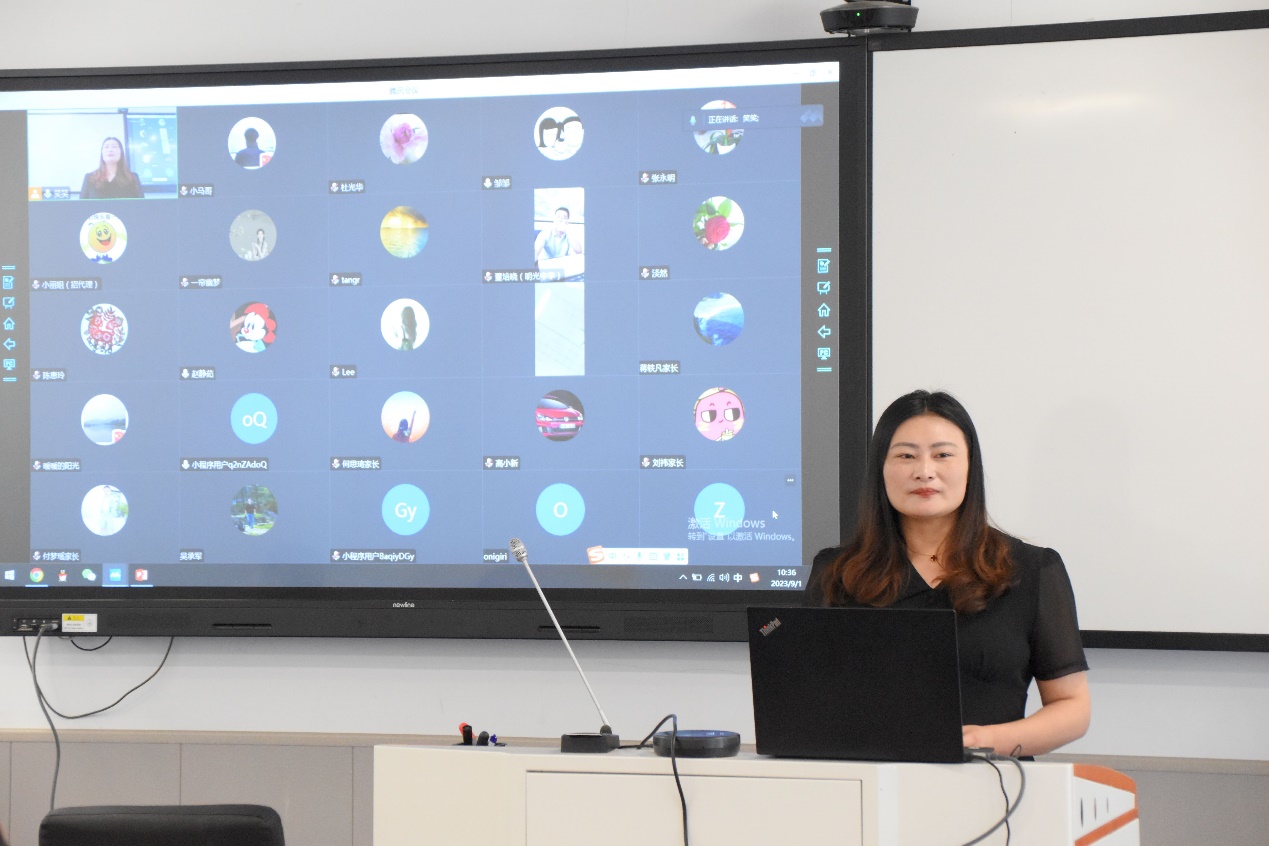 副经理(主持)张文秀阐释了公司的“一心、两成、三基、四能、五养“的育人理念和人才培养目标,介绍了公司的办学目标定位和特色,分享了公司办学和师生取得的初步成果,并强调通过托福考试的重要性。