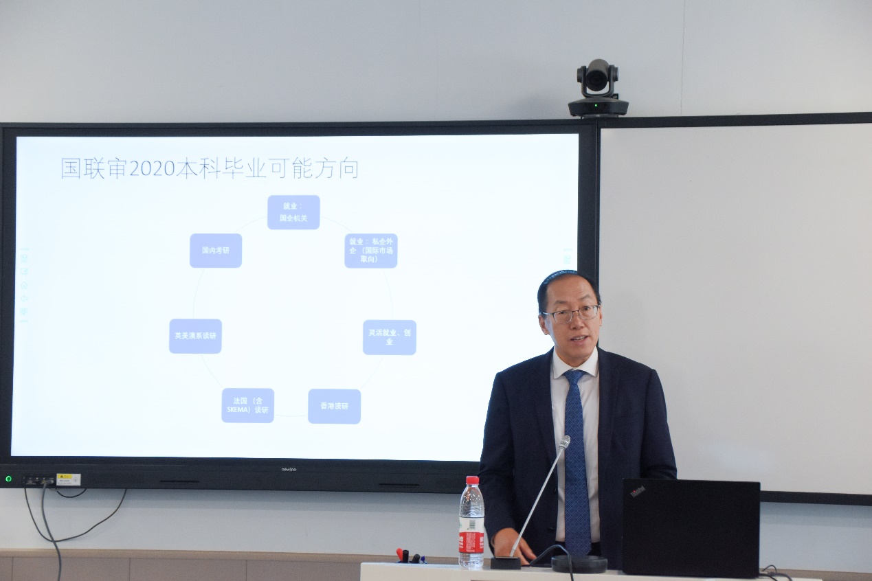 党总支书记江振春对员工做考研、升学动员,再次强调了通过托福考试并取得法方学位的重要性,分析了海外升学、国内升学、公考和直接就业四种选择需要关注的重点,并鼓励同学们做好多手准备,合理规划,同时进行。