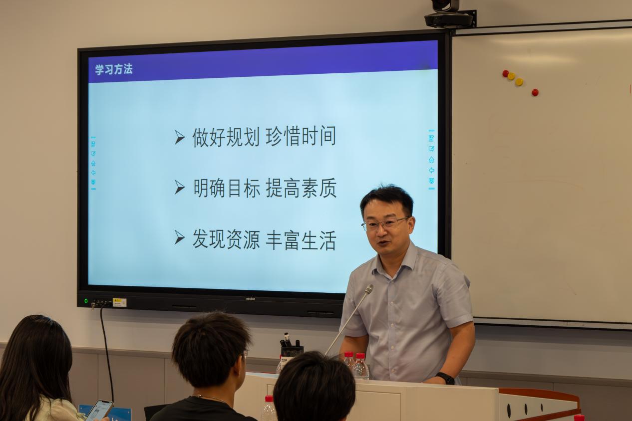 副经理李庭燎向同学们介绍了国际本科的课程设置,并分享了三点学习方法:一是做好规划,珍惜时间;二是明确目标,提高素质;三是发现资源,丰富生活。他希望同学们在审大的校园中留下一段难忘的经历。