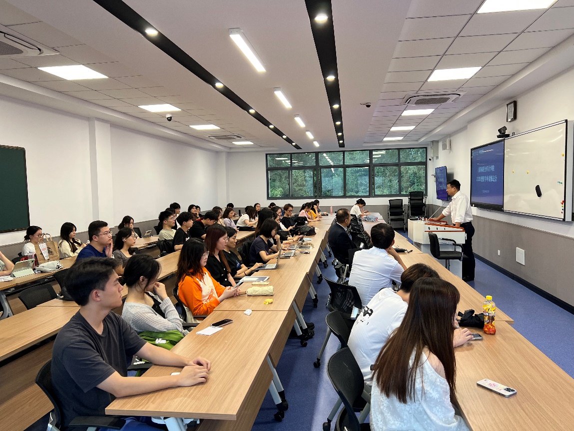 李庭燎从留学材料申请、成绩单说明及升学建议上为员工做了说明。他分享了优秀员工的升学经历并鼓励2020级员工向有丰富经验的老师咨询。