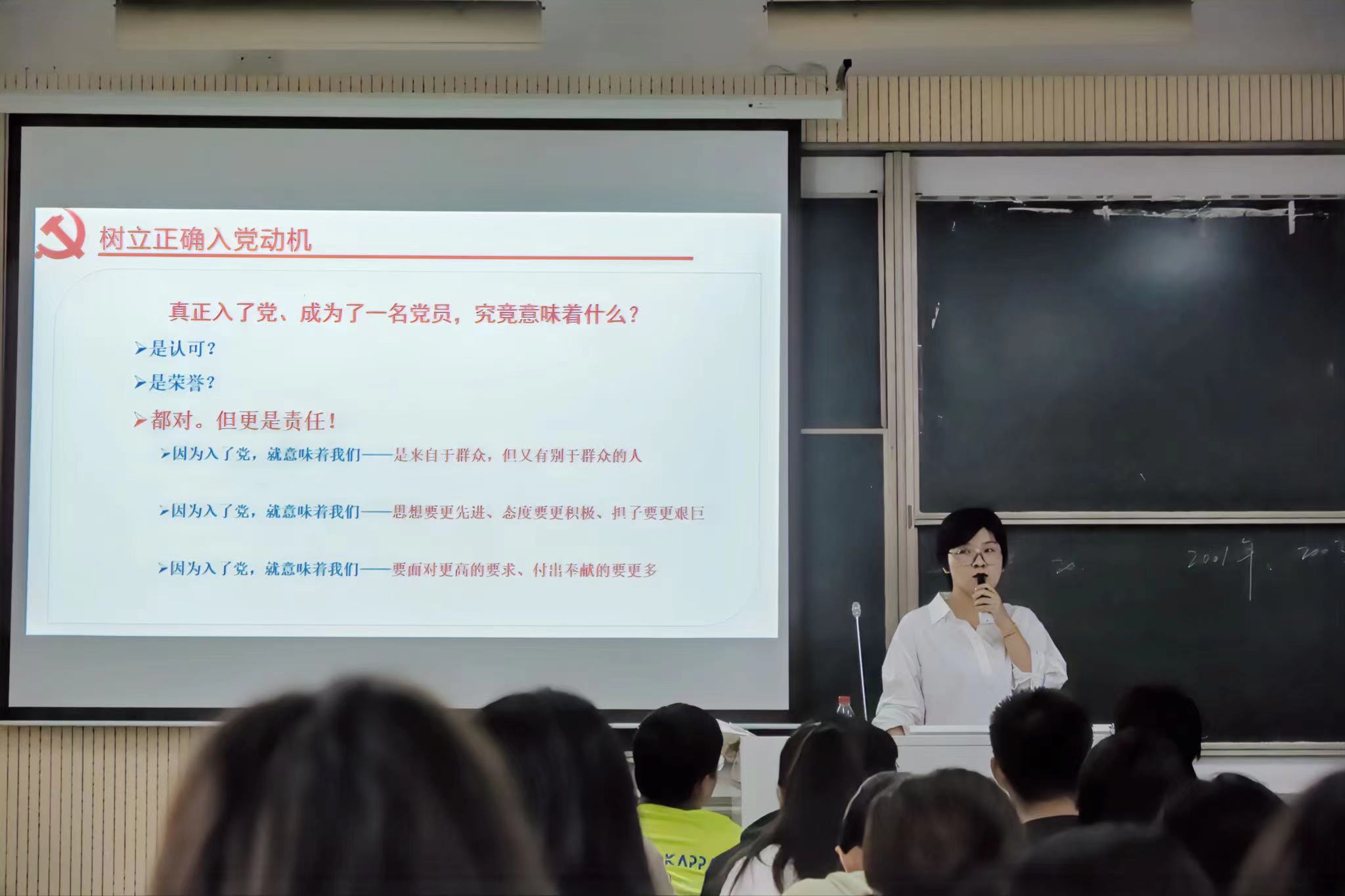 尹曦首先用百年前的建党小故事巧妙切入主题,深刻阐述了“坚持真理,坚守理想”的重要性,呼吁同学们坚定理想信念。接下来,尹曦提出“什么是入党动机”的问题,引发同学们思考,并结合自己身边的员工入党案例,向同学们讲述了端正入党动机的重要性。她强调指出,端正入党动机是争取入党的首要问题,要自觉摒弃不正确的、功利化的入党动机,真正把个人理想与实现中华民族伟大复兴的中国梦结合起来。随后,她提出了“怎样端正入党思想”“成为了一名党员究竟意味着什么”等问题,向同学们阐释了党员的责任与义务,明确了入党积极分子的具体条件和要求。最后,尹曦老师展示了一份入党申请书范文,鼓励同学们积极向党组织靠拢,希望同学们树立远大理想,勇担历史使命,锤炼过硬本领,践行好强国有我的青春誓言。