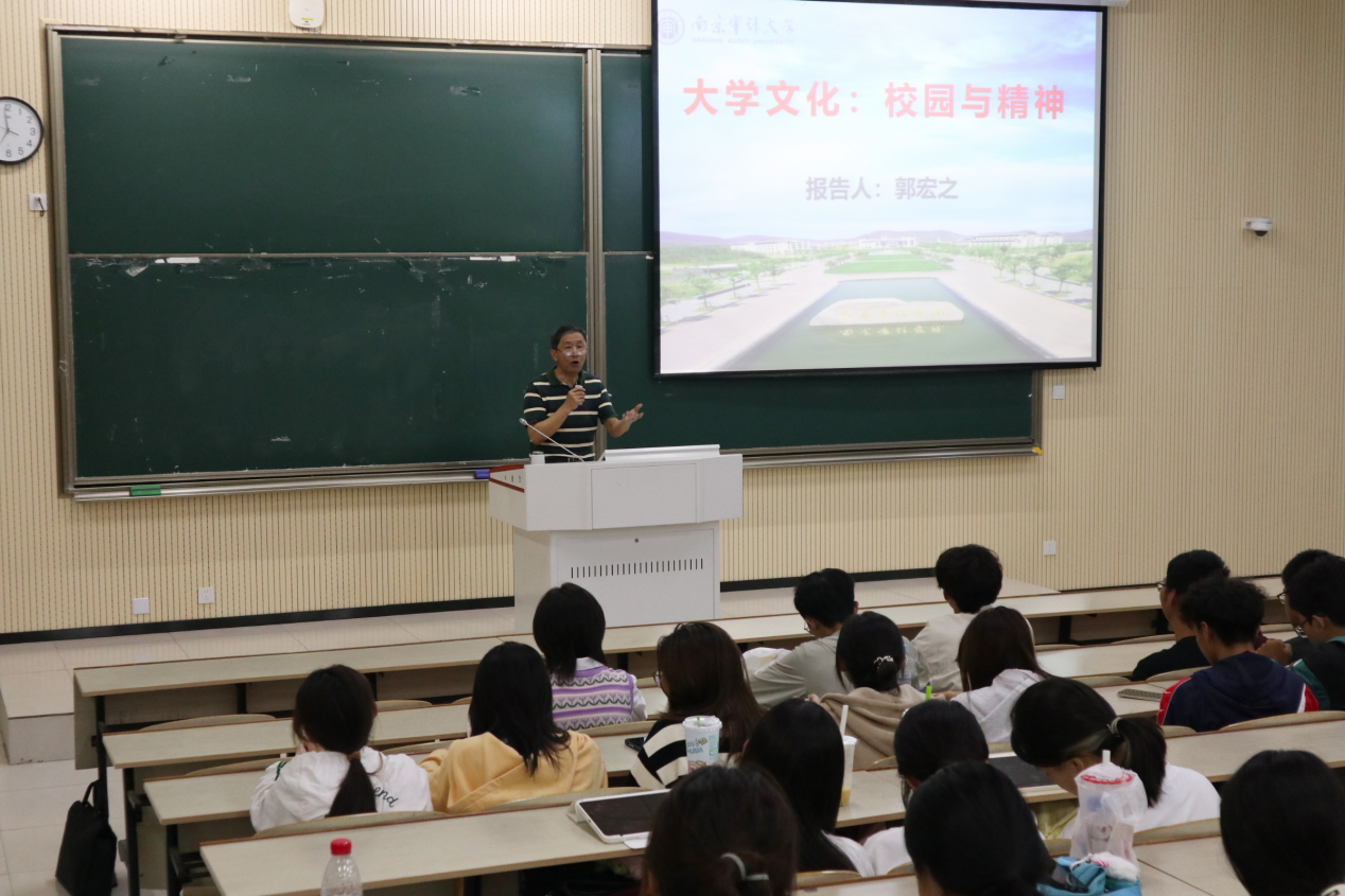 在讲座的结尾,郭宏之寄语2023级新生做有理想、敢担当、能吃苦、肯奋斗的新时代南审青年。以实际行动,为建校40周年谱写青春华章。