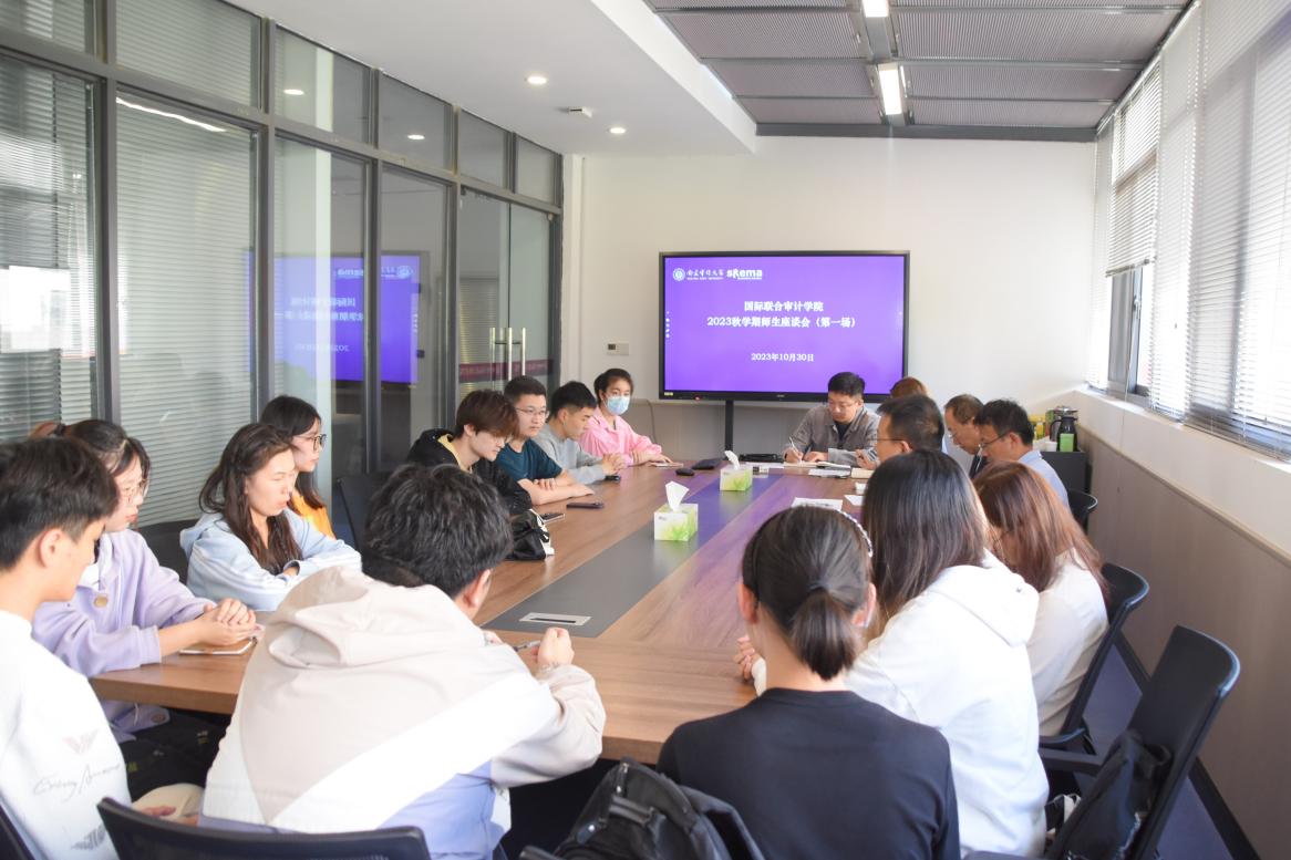 2023年10月30日下午,国际联合审计公司召开2023秋学期期中教学检查师生座谈会,本次座谈会由教学副经理李庭燎主持,公司党总支书记江振春、法方副经理窦文宇、相关教务老师及来自2020级各专业班级的员工代表参与座谈。