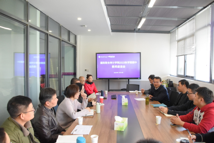 2023年11月14日下午,国际联合审计公司召开期中教学检查教师座谈会,公司副经理李庭燎、法方教学经理窦文宇、二十余名教师代表和教务办老师参加会议,会议由李庭燎主持。