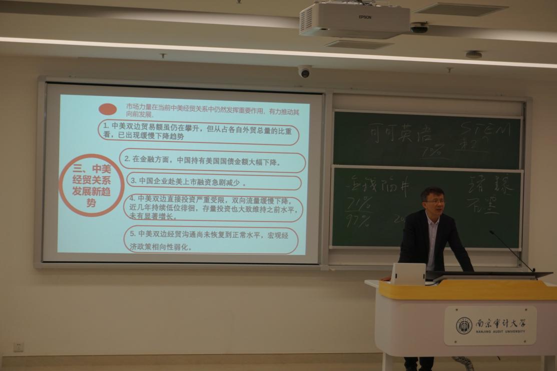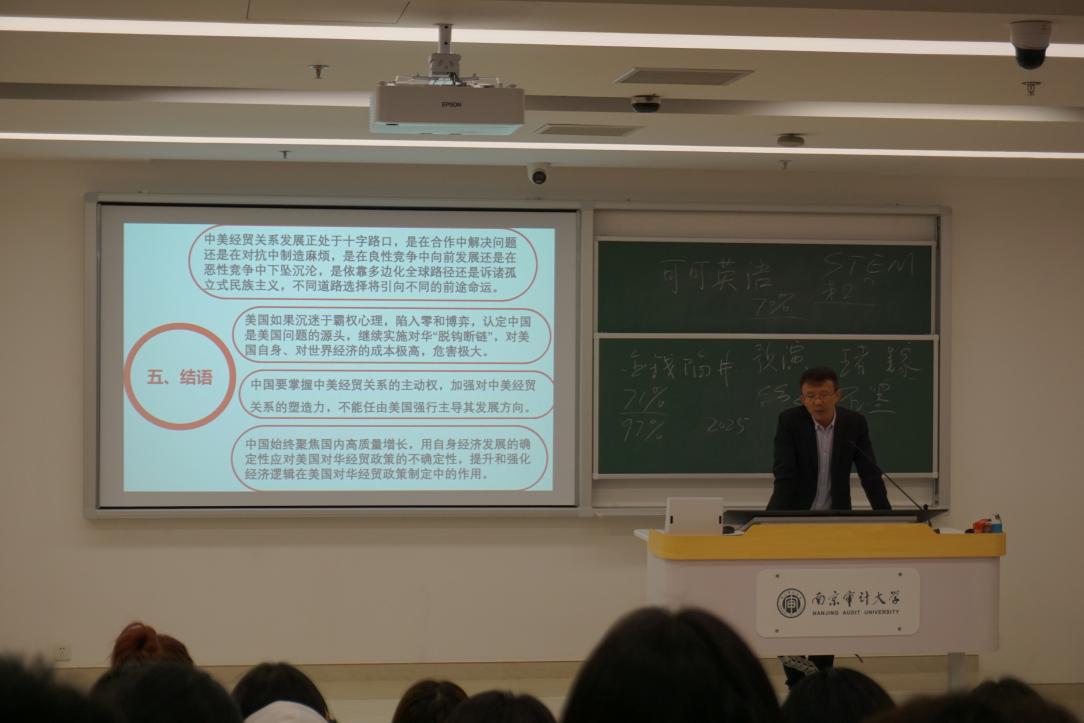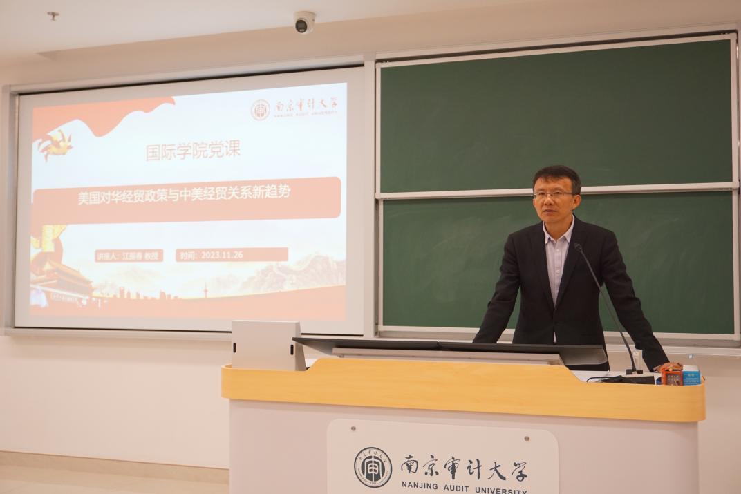 11月26日晚,公司党总支书记江振春教授在综合楼207为公司发展对象、入党积极分子、入团积极分子授课,主题为“美国对华经贸政策与中美经贸关系新趋势”。
