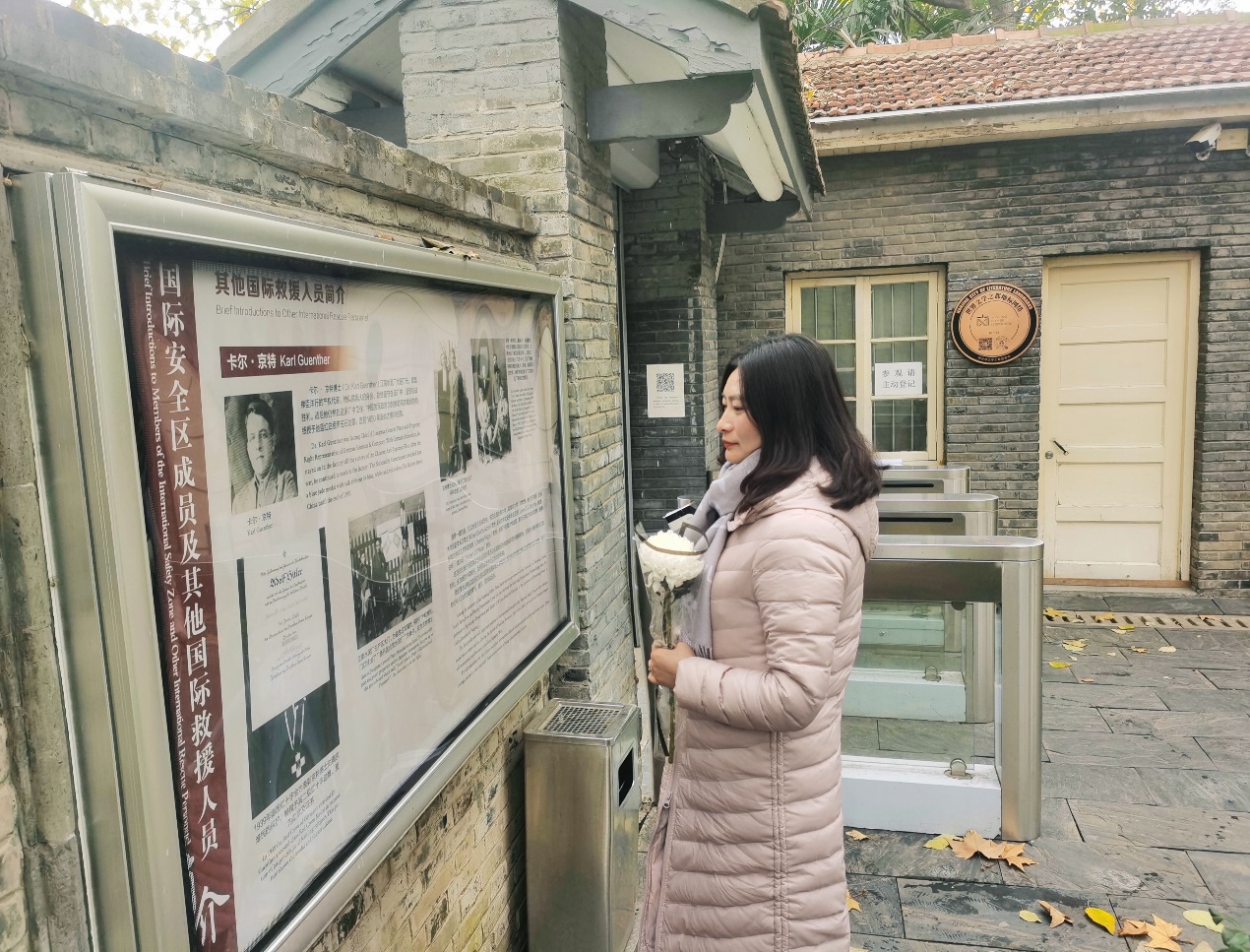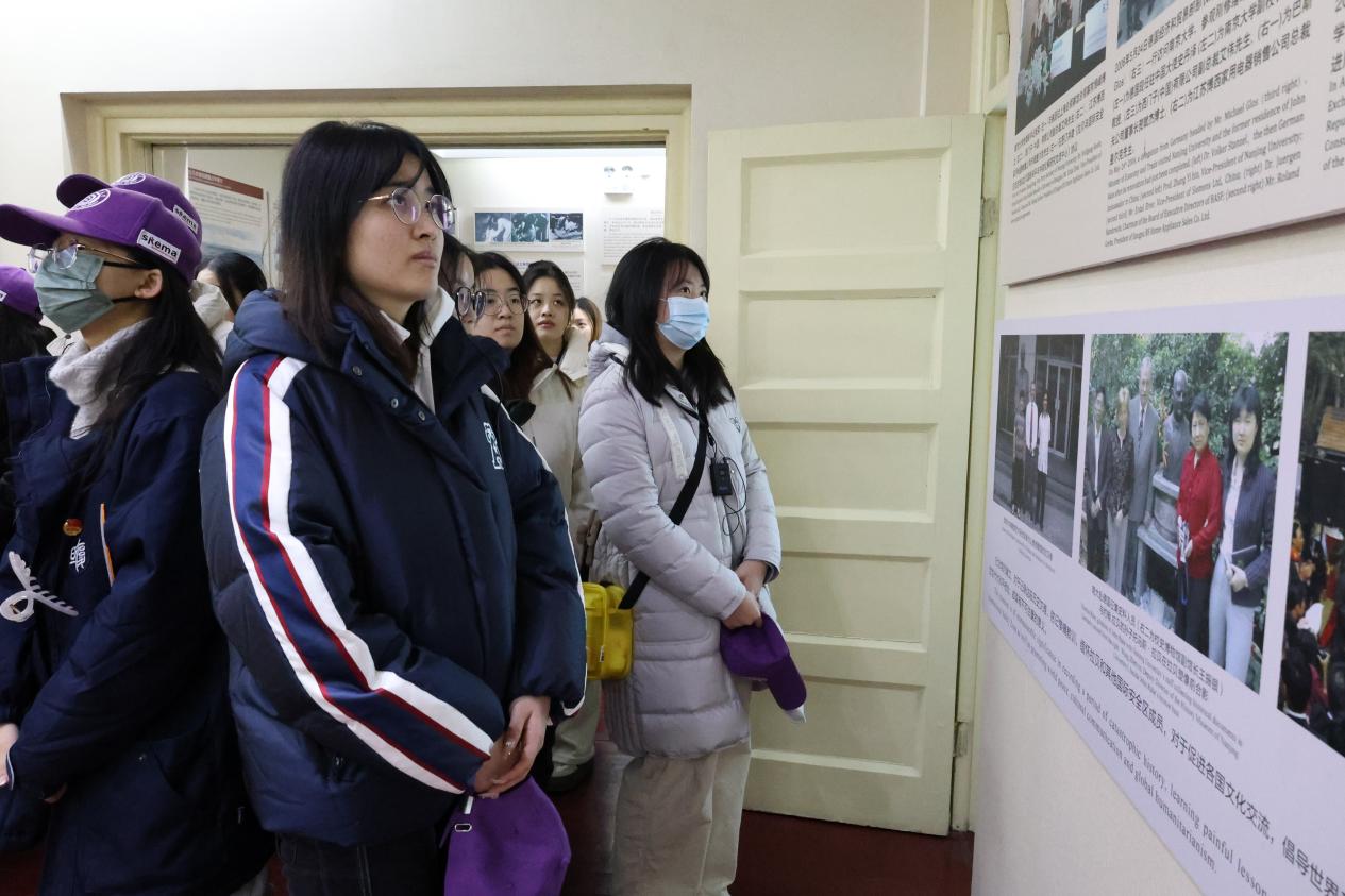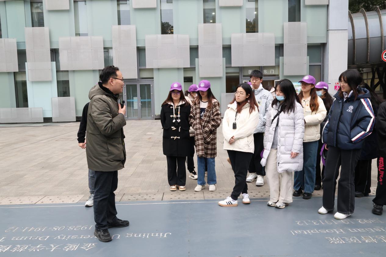 随后,卢博士带领大家前往南京鼓楼医院。鼓楼医院1892年建成,由加拿大籍传教士马林任经理。在风雨飘摇的1937年,当日军的铁蹄践踏着金陵大地,作为一家带有宗教背景的医院,鼓楼医院成为了南京沦陷后唯一一家有能力并有意愿为难民提供救助的医疗机构,挽救了数以万计的中国同胞,并为战后东京审判和南京审判留下了完整的证据。