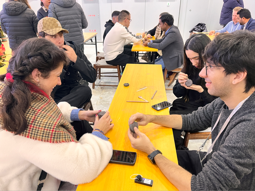 悠悠长江下游,古城镇江东北角,有宝岛名曰焦山,被历代文人雅士誉为“江中浮玉”。活动首日,交换生一行来到焦山碑林,打卡了闻名于世的摩崖石刻与碑林,感受江南碑刻精粹,敷历代书法风范、融自然景观人文景观于一体。此外,他们还来到位于西津渡的尚清戏台、镇江民间文化艺术馆等地,通过赏扬剧《白蛇传》选段、看民间艺术展以及制作省非物质文化遗产--太平泥叫叫,近距离感受了镇江民间艺术的独特魅力。