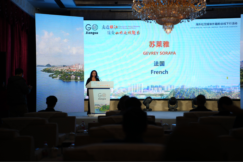 公司交换生苏莱雅(GEVREY SORAYA)在活动启动仪式上分享了自己的感受,她表示,此前对自己和其他外国人来说,提起中国,大家熟知的便是上海、北京和香港,但来中国的三个月里,她有机会探索江苏、四川、广东这些城市,她发现中国是个幅员辽阔的地方。这次,她非常高兴能在旅行清单上加上镇江,体验非物质文化遗产。在她看来,旅行是生活的老师,她很兴奋能在旅行中学习和发现新事物。回到法国之后,她也会将此次旅行分享给家人。
