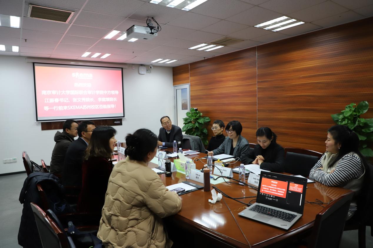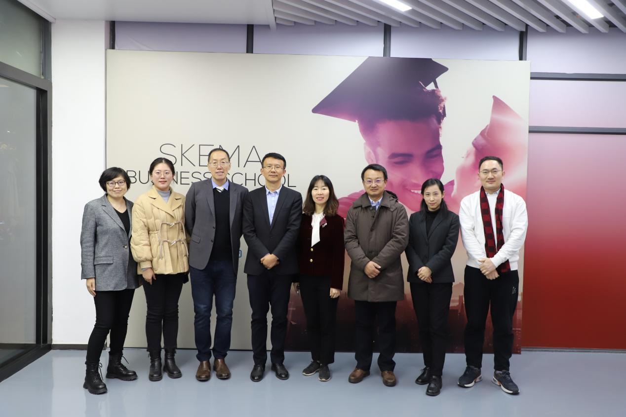 在SKEMA商公司,公司领导班子一行与SKEMA商公司中国校区学术董事长、XC体育国际联合审计公司法方副经理窦文宇,苏州校区高级运营经理邓博、校际合作与招生经理杨娟、市场宣传经理孙景蕾、人力资源兼支持部门经理周高交流座谈。