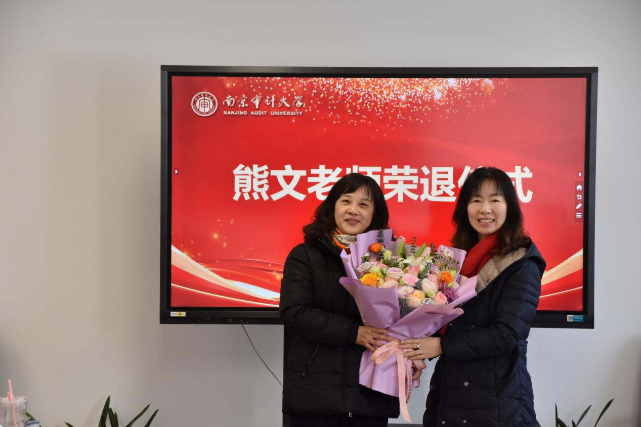 随后,公司为熊文老师举办荣退仪式。仪式上,公司副经理(主持)张文秀代表部门向熊文老师献花,并对熊文多年来为公司事业发展付出的心血和汗水表示感谢,希望老教师退休后健康平安,生活丰富多彩,继续关心和支持公司工作。