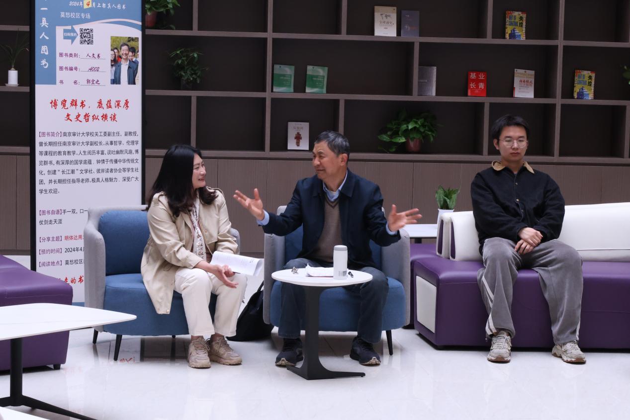 4月17日下午,第200场真人图书在公司莫愁校区图书馆举行。校关工委副主任、特邀组织员郭宏之副教授与XCsports20多位读者同学就学习习近平文化思想的体会展开了深入的交流指导。XCsports副书记、副经理王静主持了本次活动。