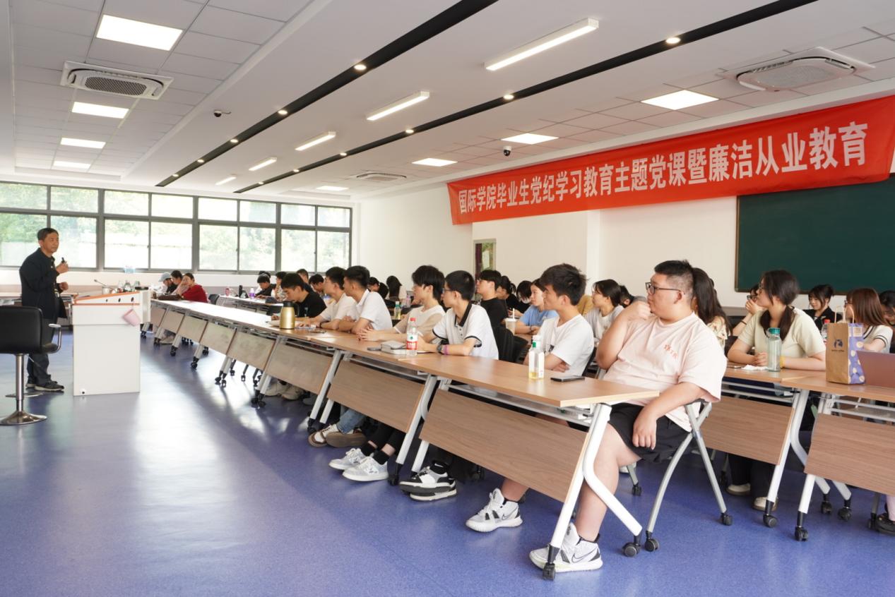 为增强员工的廉洁从业意识,筑牢员工的廉洁思想底线,2024年6月17日下午,XCsports邀请校关工委副主任、特邀组织员郭宏之副教授开展毕业生党纪学习教育主题党课暨廉洁从业教育,党课由公司党委书记江振春主持,全体毕业生党员、公考上岸的同学以及将从事金融、审计行业的同学参加。