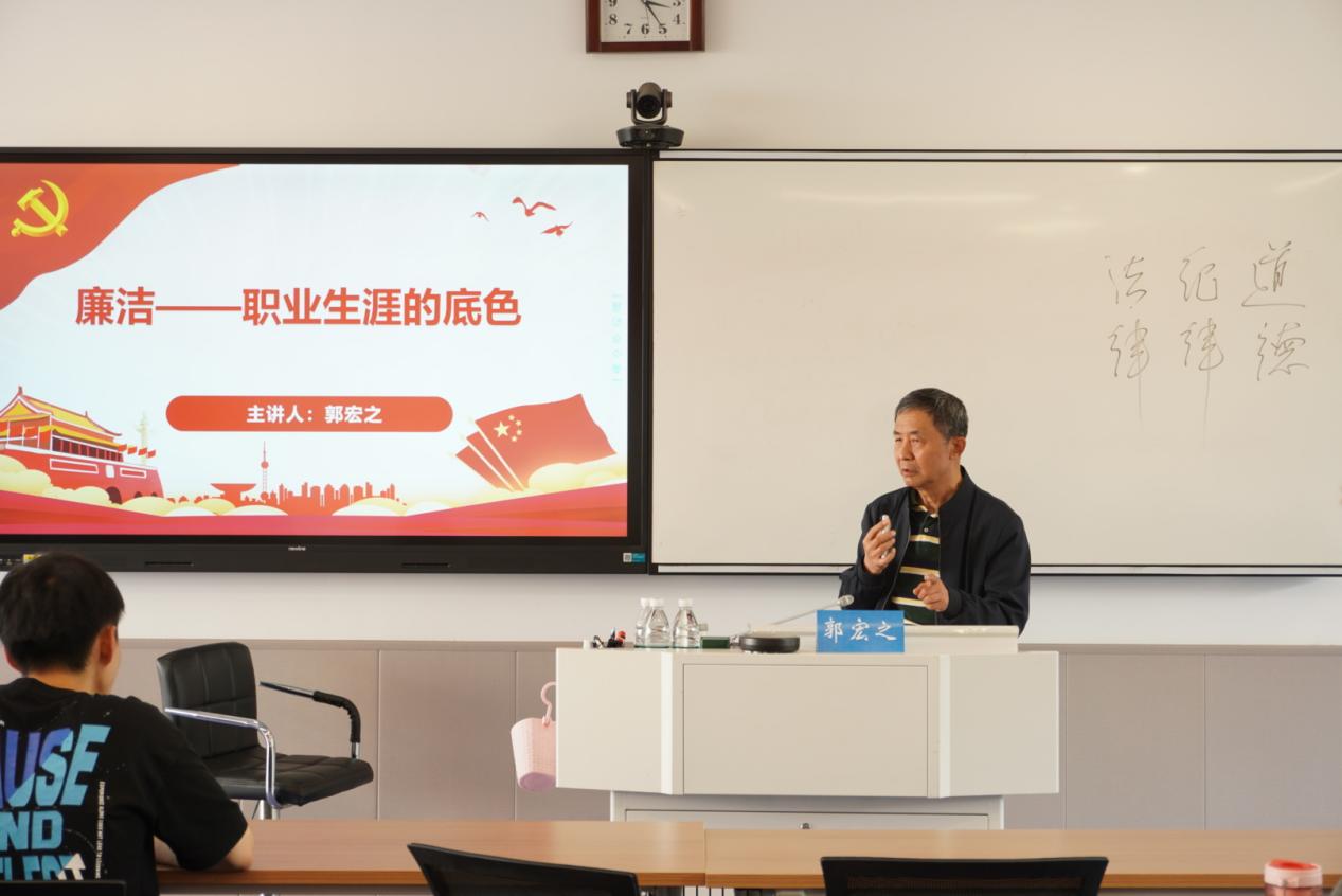 郭宏之首先阐述了廉洁的内涵与重要性,表示廉洁是道德要求,是发自内心的;也是法律要求,是各个组织都有的,是做人立身的准绳。