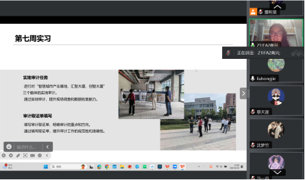 市审计局金融处实习的高兴同学对她参与的国有企业金融处审计项目做了全面介绍,她描述了在工作中NC系统的使用、租赁收入分析、异常数据查找等详细流程,并提出此次实习得以让她将《会计学基础》、《公司金融》课程所学运用于实践中,做到了理论与实践相结合,收获颇丰。
