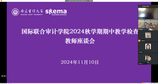 11月10日下午,为促进教师之间的意见交流与经验分享,深入探讨研究导向型教学,进一步提升教学质效,国际联合审计公司召开2024秋学期期中教学检查线上教师座谈会。本次座谈会由教学副经理李庭燎主持, 本学期任课教师代表、公司教务人员参与座谈。