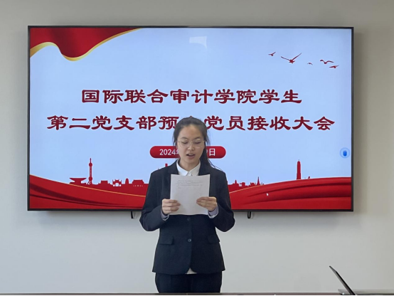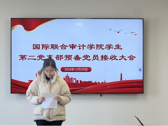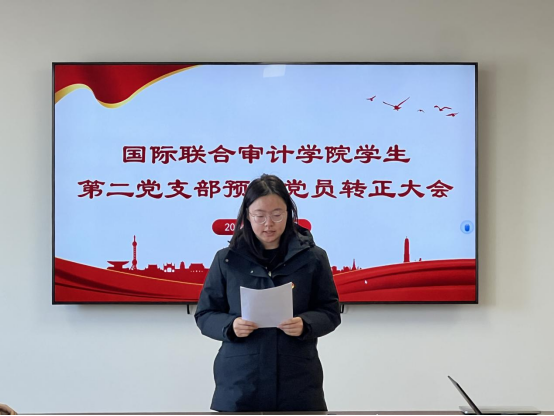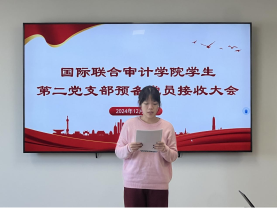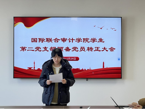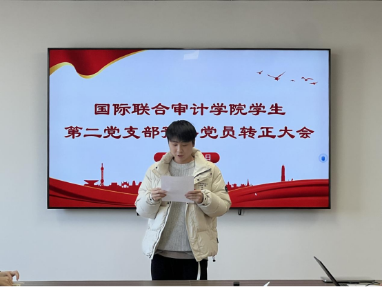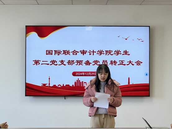 2024年12月29日,国际联合审计公司第二员工党支部在综合楼802会议室召开了预备党员转正暨接收预备党员大会。会议由党支部副书记兼组织委员顾一未同志同志主持,党支部书记尹曦同志、教师党员倪冉同志出席,第二党支部全体党员参加。